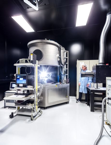 A group of building consisting of five components with a floor space of approx. 8,900 m² including a production and test area with approx. 2,000 m² of cleanroom facilities for 250 future employees was built after a construction period of 14 months.